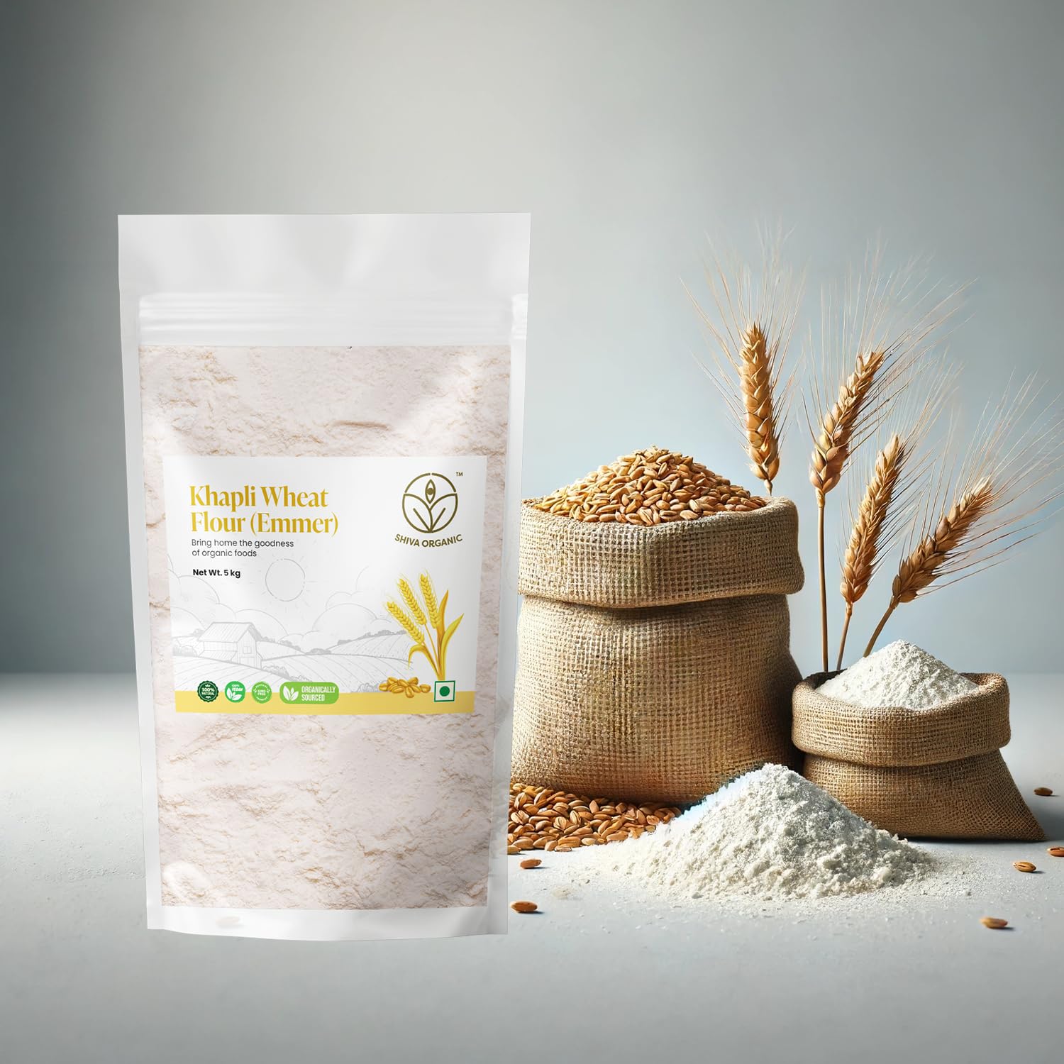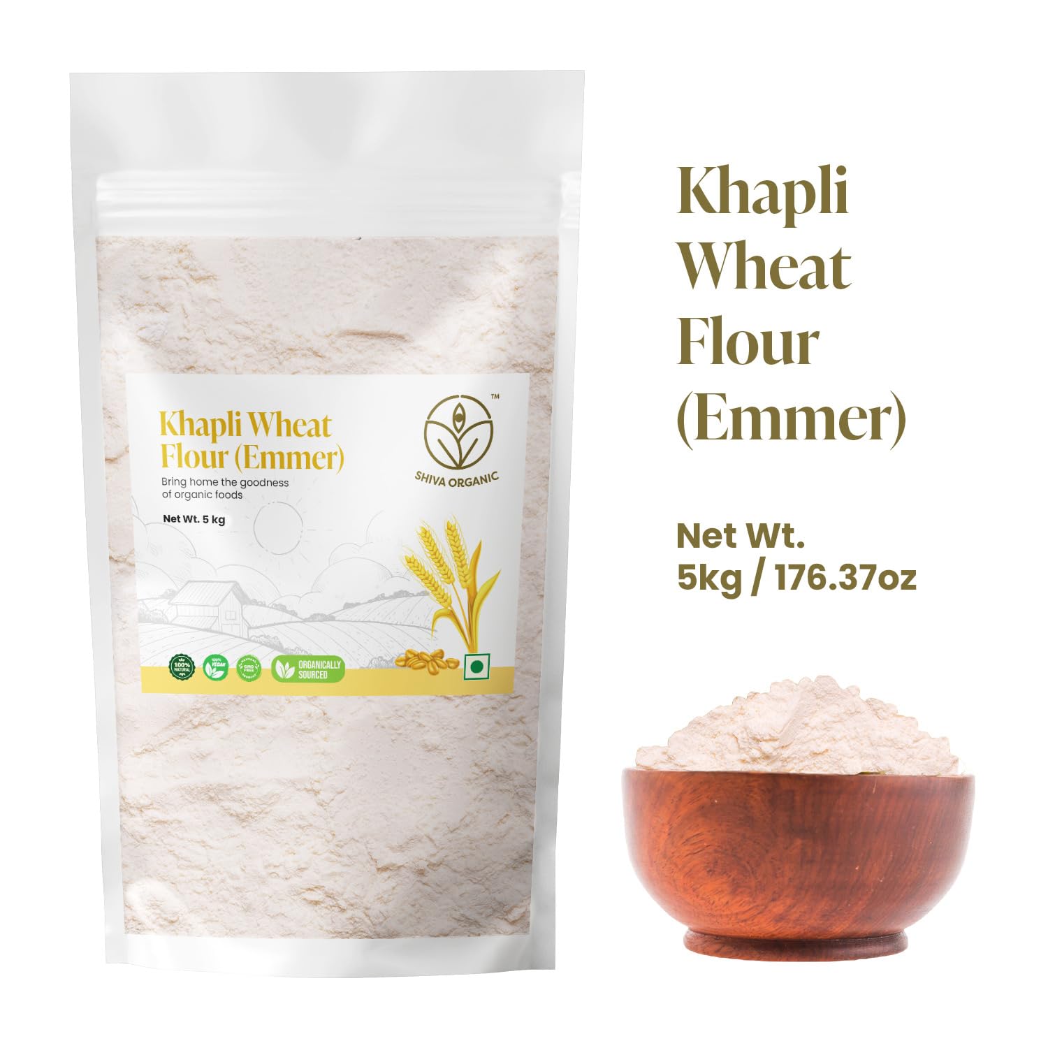 Shiva Organic Khapli Wheat Flour (5kg) | Wheat Flour | High Dietary Fiber for Easy Digestion | Stoneground Emmer Wheat Flour | Khapli Atta