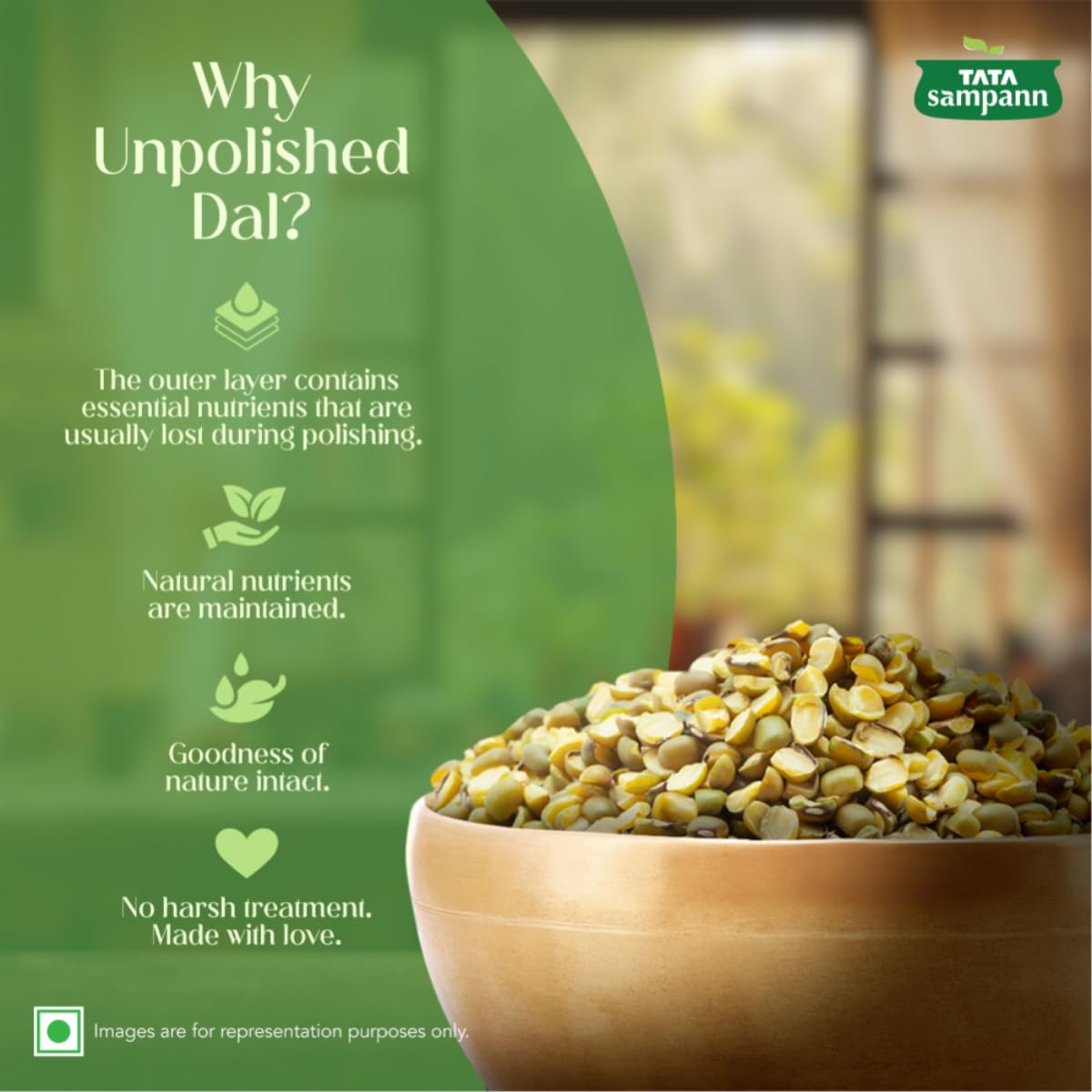 For most Indians comfort food is always linked to easy-to-cook homemade meals and what can be more convenient and quick than preparing a hearty dal meal? Essential in every household Tata Sampann dals are unpolished and do not undergo any artificial polishing with water oil or leather thereby retaining their goodness and wholesome character. The 5-step process ensures that Tata Sampann grains are uniform and of premium quality giving you an all-natural authentic taste. A staple in the Indian diet Moong Dal provides nutrients such as Protein & Fibre. Made of select grains and recommended by Chef Sanjeev Kapoor and Chef Ranveer Brar Tata Sampann Unpolished Moong Dal makes for a delicious meal choice. So whenever you are in the mood to cook something easy and delicious dive into the scrumptious taste of Tata Sampann pulses and enjoy a lovely meal! Explore Tata Sampann Pulses range - Toor dal Chana dal Moong dal Green Moong Masoor dal Masoor Small dal Masoor Whole dal Kabuli Chana Urad dal Urad Whole dal Urad Kali Kala Chana and Rajma. Storage Instructions: Store in a cool and dry place. Transfer contents to an airtight container after opening.