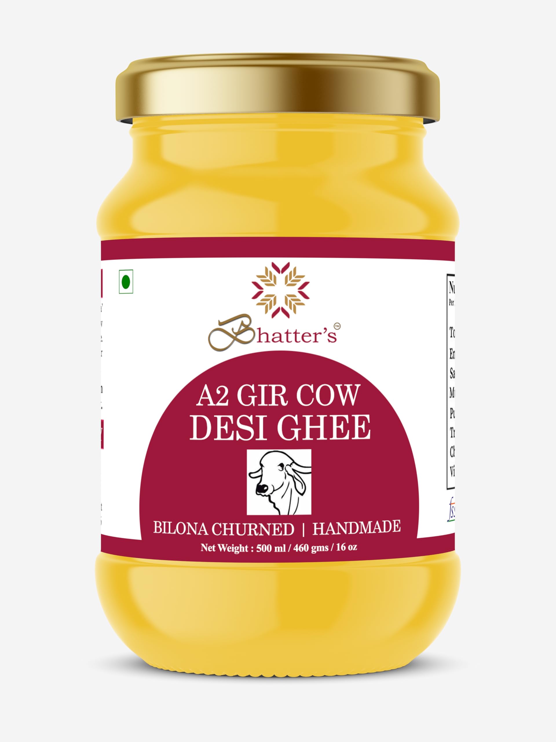 Bhatter's Premium A2 Gir Cow Cultured Desi Ghee | Vedic Bilona Two Way Churned | Indian Gir Cow Ghee, Pure A2 Ghee, Natural & Healthy, Non-GMO | Lab Certified (1000 ML)