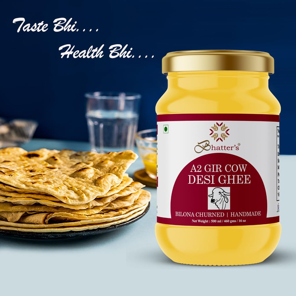 Bhatter's Premium A2 Gir Cow Cultured Desi Ghee is a quintessential addition to any health-conscious kitchen, meticulously crafted through the traditional Vedic Bilona method, which involves a two-way churning process to ensure the highest quality and flavor. Sourced exclusively from Indian Gir cows, this pure A2 ghee is renowned for its rich nutritional profile, offering a plethora of health benefits, including enhanced digestion and improved immunity. Each 500 ML jar is lab certified, guaranteeing that it is free from genetically modified organisms (Non-GMO) and is entirely natural, making it an ideal choice for those seeking wholesome and authentic culinary ingredients. The distinct aroma and golden hue of this ghee not only elevate the taste of your dishes but also embody the essence of traditional Indian cooking, allowing you to indulge in a product that is both delicious and beneficial for your overall well-being.