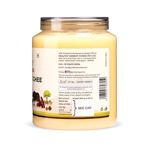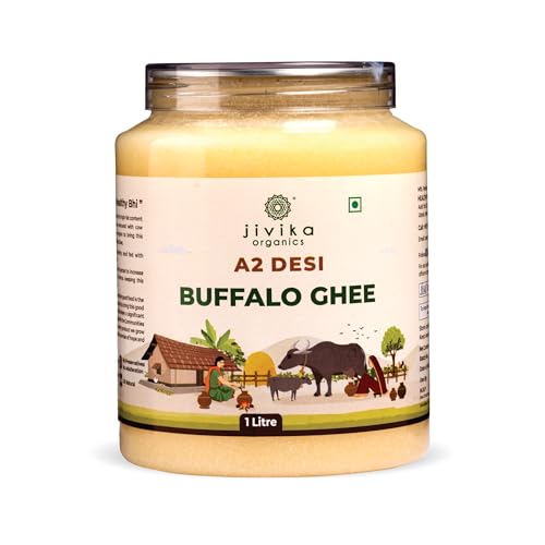Jivika A2 Desi Buffalo Ghee 1000ml | Bilona Ghee | Grass Fed Buffaloes | Murra Buffalo | Haryana Region | Pure & Natural | Nutritional Powerhouse | Lab Tested | Pet Jar