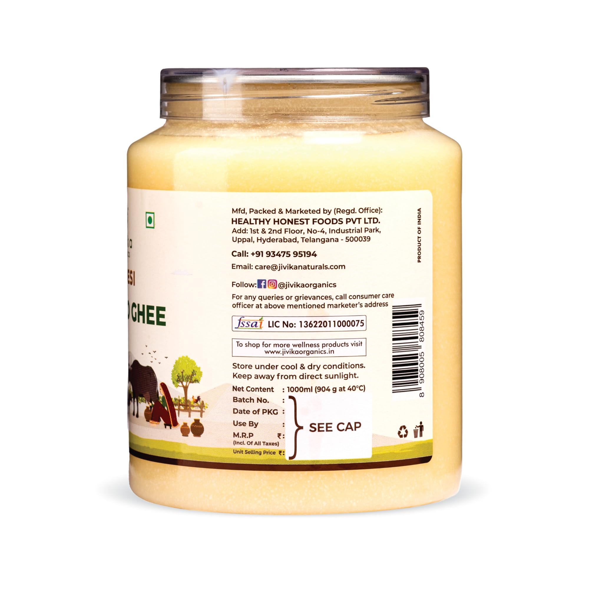 JIVIKA NATURALS A2 Desi Buffalo Ghee 1 Litre | Bilona Ghee | Grass Fed Buffaloes | Murra Buffalo | Haryana Region | Pure & Natural | Nutritional Powerhouse | Lab Tested | Pet Jar