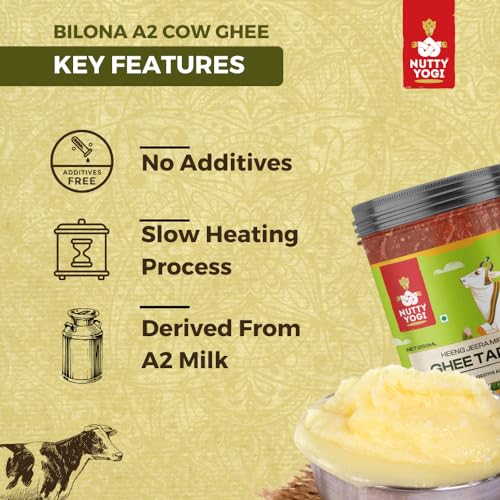 Nutty Yogi's Heeng Jeera Ghee is a must have on the dining table. Drizzle a teaspoon on anything and its flavours and aroma will just accentuate the dish. Just like we Indians love our "Tadka" we have invented the Heeng Jeera Ghee for you. Made with pure cow ghee it has spices like jeera whole red chillies heeng.