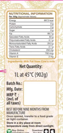 Sri Sri Tattva Cow Ghee - Premium Cow Ghee for Better Digestion and Immunity - 1 Litre (Pack of 1)