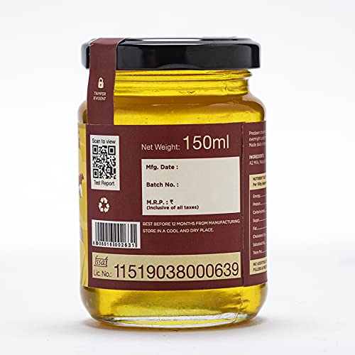 Ayurvedic AMOREARTH ghee is made from fermented butter churned out of yogurt or curd/Cultured Ghee.The Ghee has been tested by a German Laboratory TuV Nord for all Nutritional facts and for additives and and found to be completely additives Free.Some facts benefits of Amorearth Desi Cow Ghee. The type of saturated fat that Amorearth Desi Ghee has is the short-chain-fatty acid.This ghee is made when fermented grass-fed butter is simmered to remove milk solids and impurities leaving only the nutritional goodness behind. It is easy to digest and safe for most people with lactose or casein sensitivities.This Desi Cow Ghee has a smooth creamy texture and rich nutty flavor and is a versatile pantry staple that can replace butter olive oil and coconut oil Another of ghees unique properties is that since the milk solids are removed it contains little to no casein or lactose the two compounds in dairy that most often cause allergies and sensitivities. This means that most dairy-sensitive people can enjoy ghee.Desi Cow Ghee is rich in short- and medium-chain fatty acids that are considered to be healthy.Desi Cow Ghee is both hugely beneficial inside and outside of the body. The consumption of ghee offers a wide range of benefitsincluding clarity of mind and sound .Desi Cow is a common topical for burns and rashes as well as a great moisturizer and massage oil for the skin & scalp.