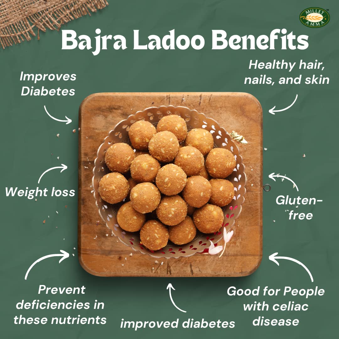 HomeGroceryCookingThe Millet StoreMillet Amma Bajra Ladoo Jar 300 Gms | Ready to Eat | Made with Jaggery | (Pearl Millet Ladoo - Sajjalu Sajje Kambu) | No Refined Sugar No Additional Flavors or Colors No Preservatives
