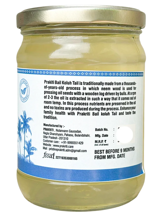 Prakriti Bull Driven Coconut oil 500ml- Wood and Cold press