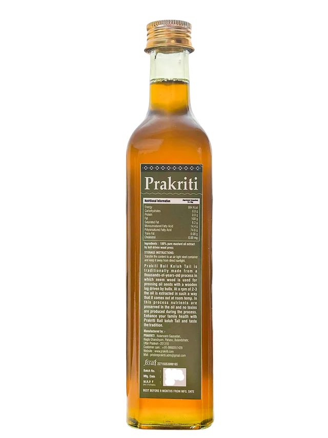 Prakriti Bull Driven Black Mustard oil 500ml- Wood and Cold press