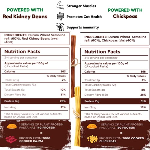 HomeGroceryCookingPasta & NoodlesLong&Short Red Kidney Beans Spaghetti & Chickpeas Spaghetti | Pasta 250g x 2 | Plant Protein Healthy No Maida No Maida Combo