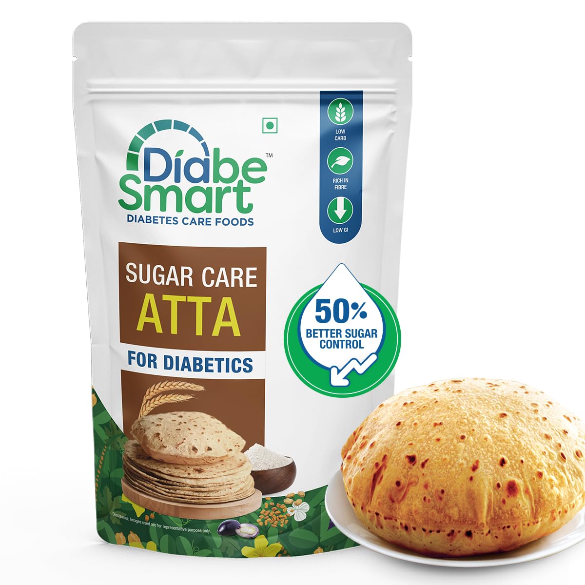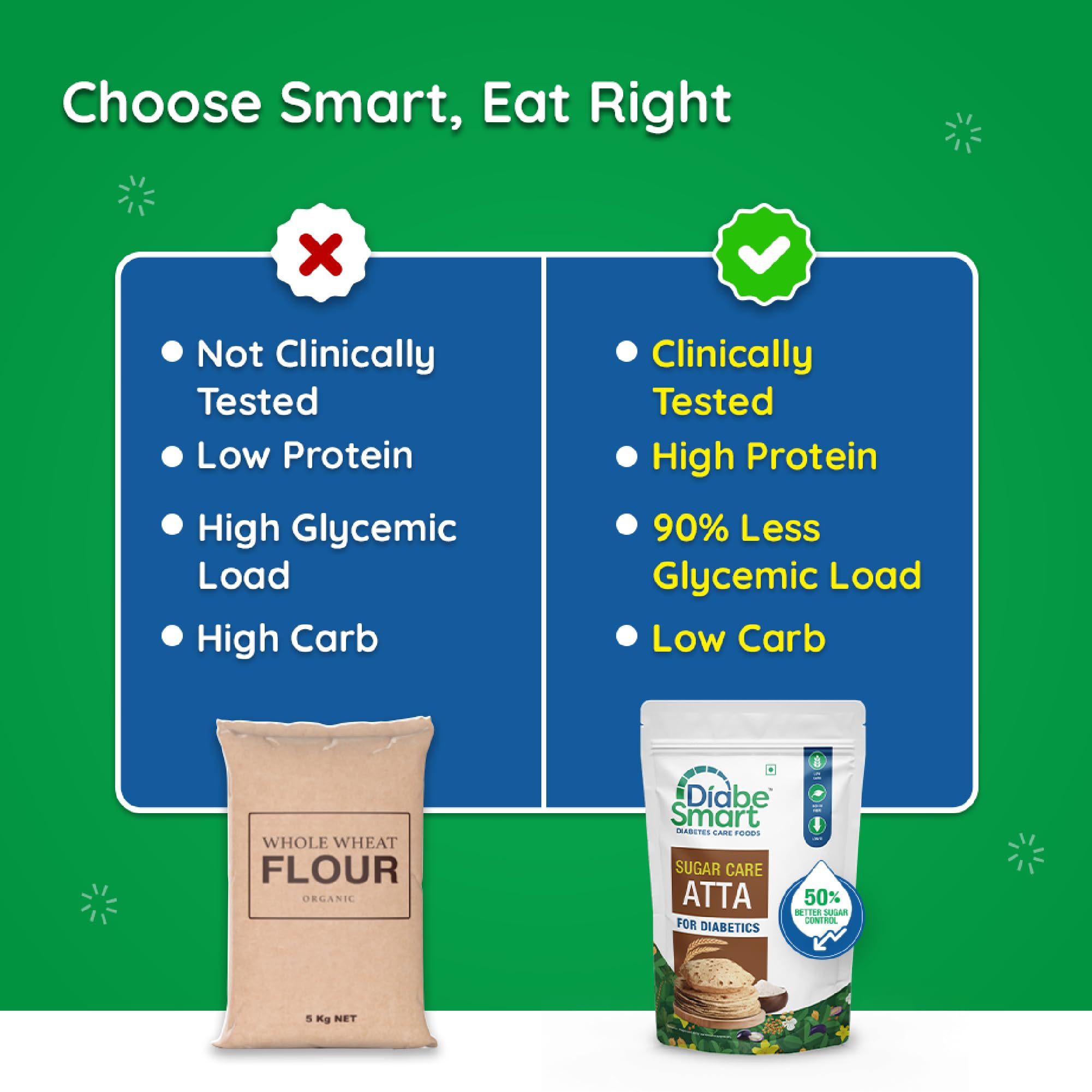 HomeGroceryCookingNatural SugarDiabeSmart Sugar Care Atta 1 Kg | 50% Better Sugar Control | Low GI Multigrain Atta for Sugar Release Control | Tested on Diabetics | Diabetic Atta For Diabetic Care | High Fiber Flour