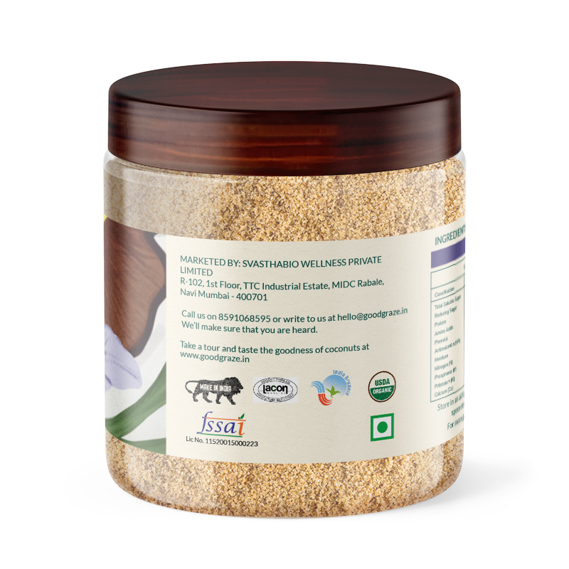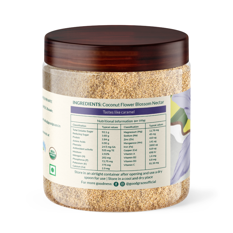 Good Graze Coconut sugar is organically farmed, unrefined, and sustainably sourced. Coconut sugar is suitable for , adults, people aiming for a healthy lifestyle. Good Grazes coconuts are grown in natural spring water. The source of our coconuts nutrition comes fully and directly from the natural spring water immersed in the land. This rare system provides the earth with that benefit the fruit bearing coconut trees. This natural spring water is of high quality & has extensive mineral content. One can only imagine the positive inence this water would create on its surrounding flora and fauna.