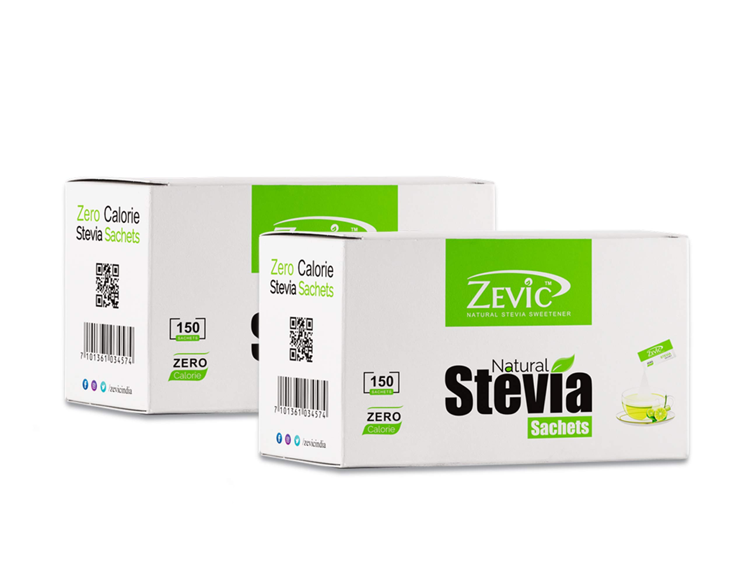 Zevic 100% Sugar Free Natural Stevia Sachets | Zero Calories | Vegan & Keto | Diabetic Friendly - 150 Units (Pack of 2)