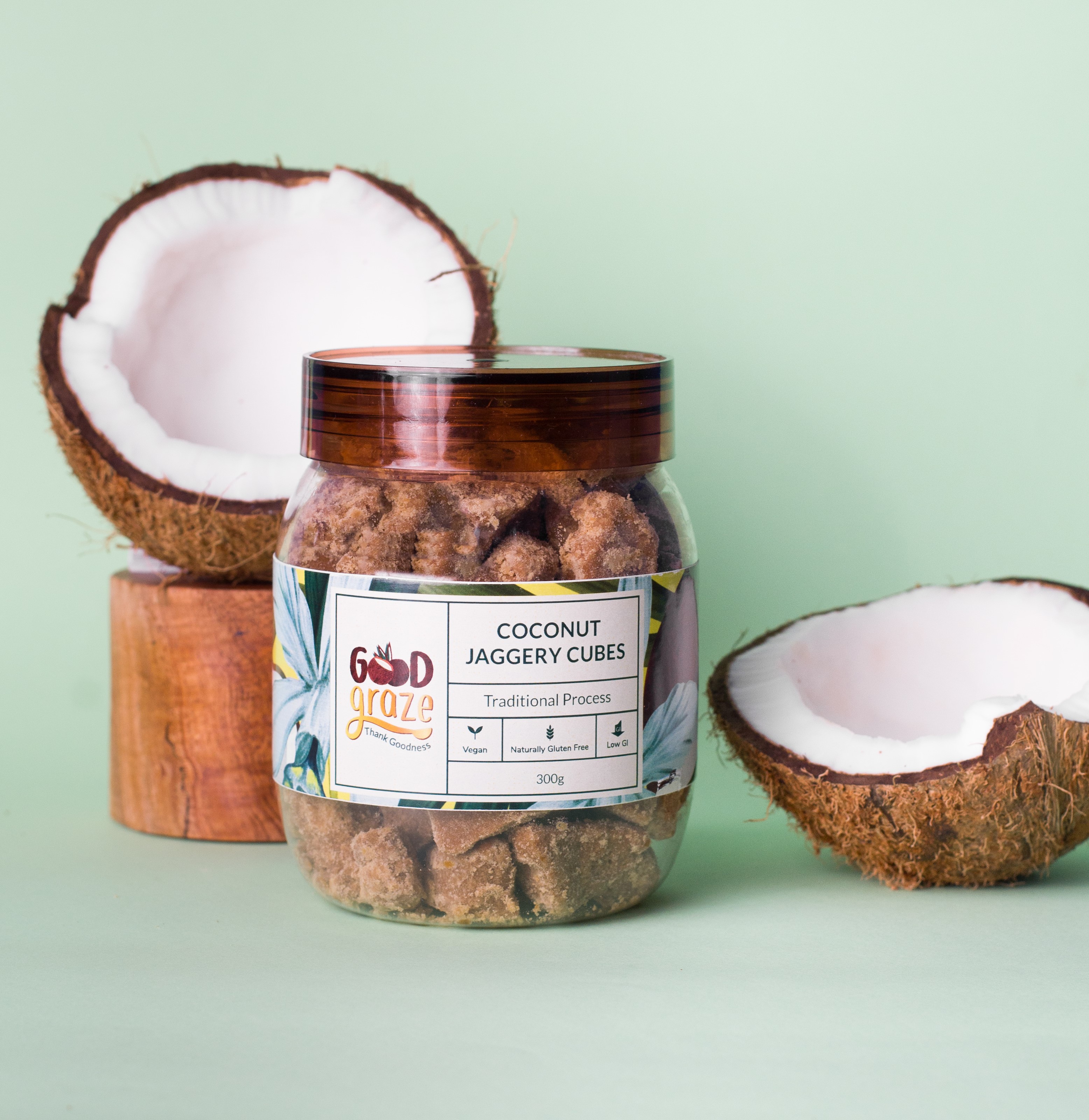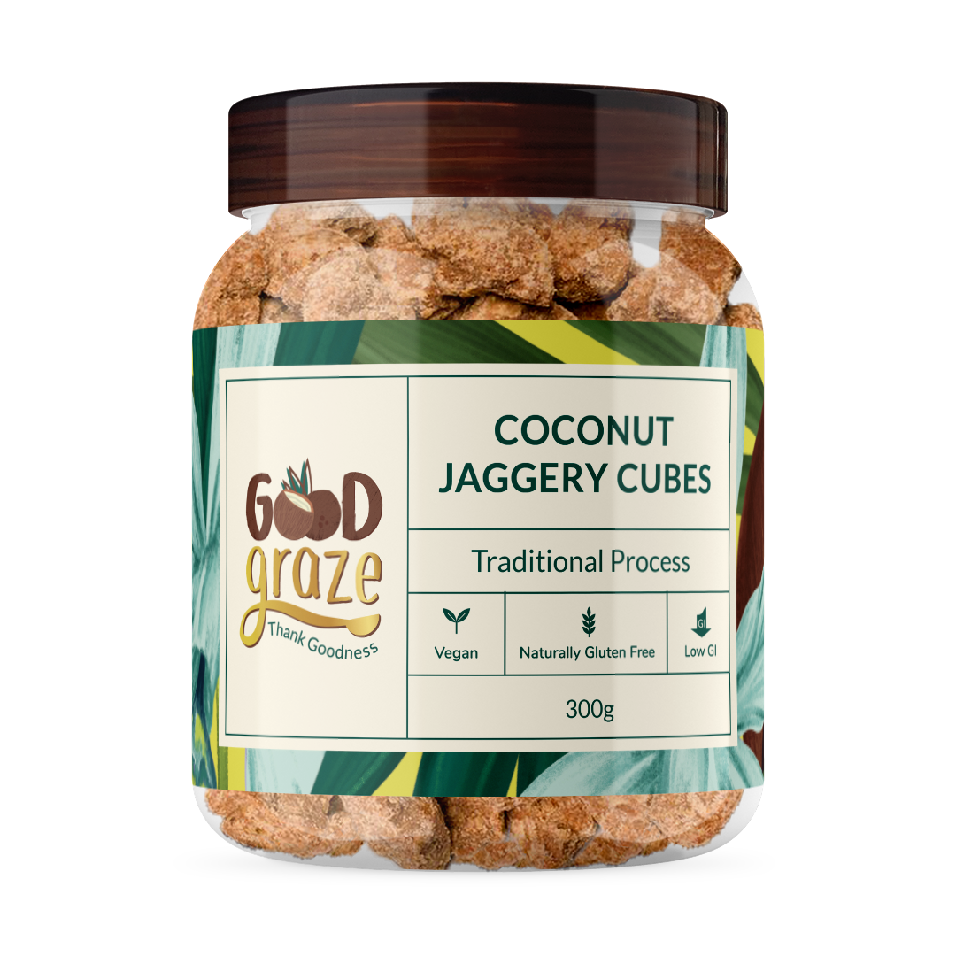 Good Graze Coconut Jaggery cubes are made from 100% pure coconut flower nectar, organically farmed, unrefined, and sustainably sourced. Good Grazes coconuts are grown in natural spring water. The source of our coconuts nutrition comes fully and directly from the natural spring water immersed in the land. This rare system provides the earth with that benefit the fruit bearing coconut trees. This natural spring water is of high quality & has extensive mineral content. One can only imagine the positive inence this water would create on its surrounding flora and fauna.