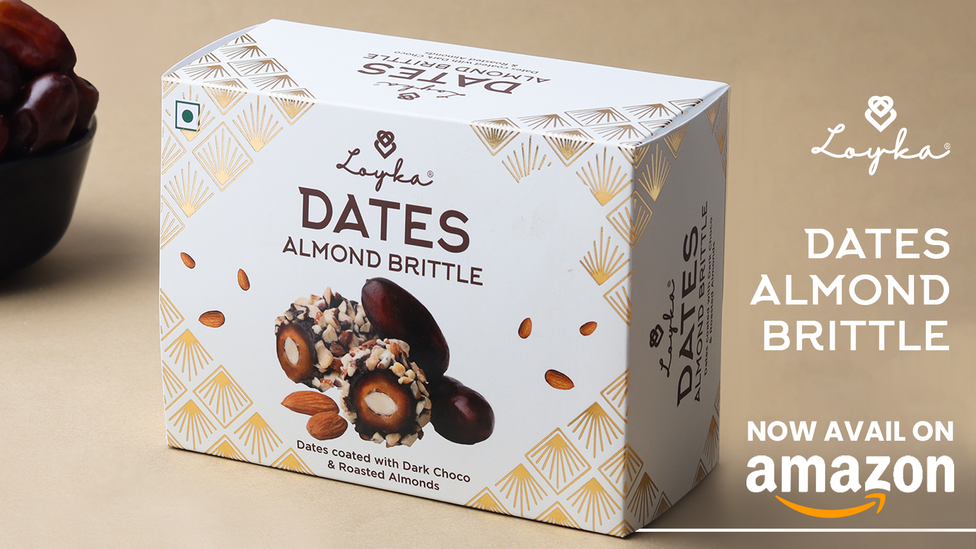 "Introducing our delicious Caramel Almond Dates made with only four simple high-quality ingredients to create a perfectly balanced and irresistible treat. Each bite of our Caramel Almond Dates delivers a satisfying crunch of roasted California almonds complemented by the natural sweetness of dates and the rich buttery flavor of ghee. The filling is then elevated with a delectable layer of caramelized jaggery adding a depth of flavor that will keep you coming back for more. Our Caramel Almond Dates are not only a great-tasting indulgence but also a healthy snack that can be enjoyed guilt-free. Dates are packed with essential vitamins and minerals including potassium magnesium and iron and are a natural source of energy. Almonds are loaded with protein healthy fats and fiber making them a perfect snack to help you stay full and satisfied. The use of ghee a type of clarified butter commonly used in Indian cuisine provides a rich source of healthy fats and imparts a unique nutty flavor to the filling. Lastly jaggery a traditional sweetener made from unrefined cane sugar provides a healthier alternative to processed sugars commonly found in other sweets. Our Caramel Almond Dates come in a 12-piece box making them perfect for sharing with friends and family or as a convenient on-the-go snack. Additionally our product is gluten-free making it a great option for those with dietary restrictions. Whether you are looking for a quick pick-me-up snack a post-workout refuel or a special treat for yourself our Caramel Almond Dates are sure to hit the spot. With their perfect balance of crunchy almonds chewy dates and caramelized jaggery our product offers a delicious and healthy option that is perfect for any occasion. Try them today and discover why our Caramel Almond Dates are quickly becoming a customer favorite!"