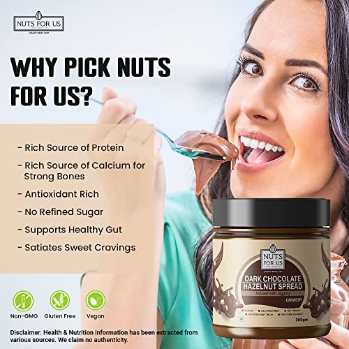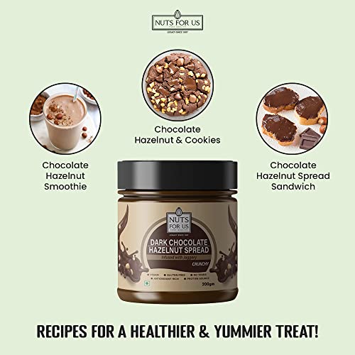 Nuts for us Dark Chocolate Hazelnut Spread Butter infused with Jaggery 200g | Crunchy | No Added Sugar