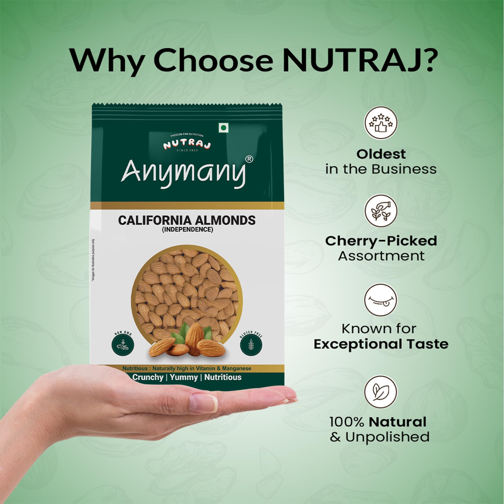 • CRUNCHY AND FLAVOURFUL: Premium packaging keeps Nutraj almonds crunchy and flavourful.