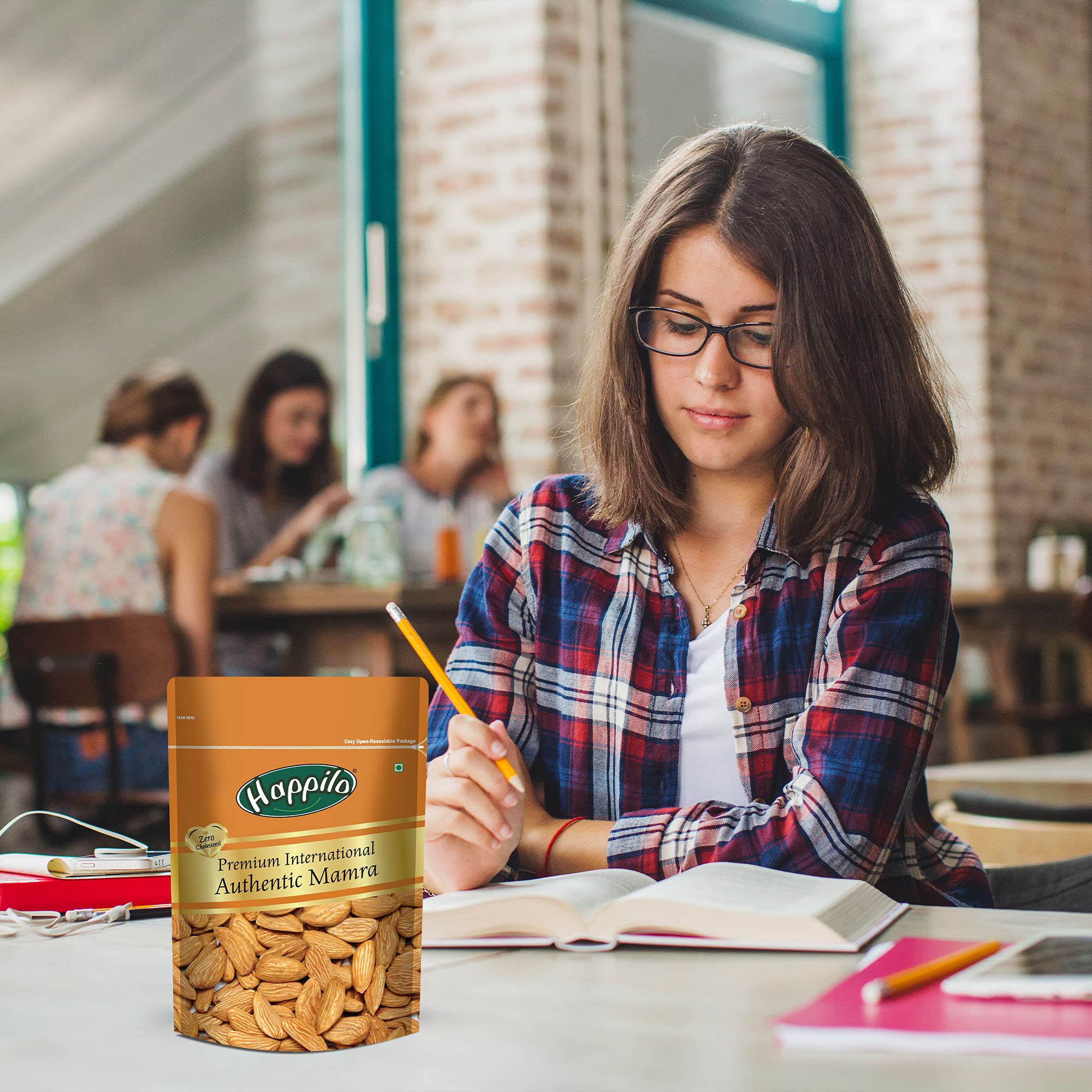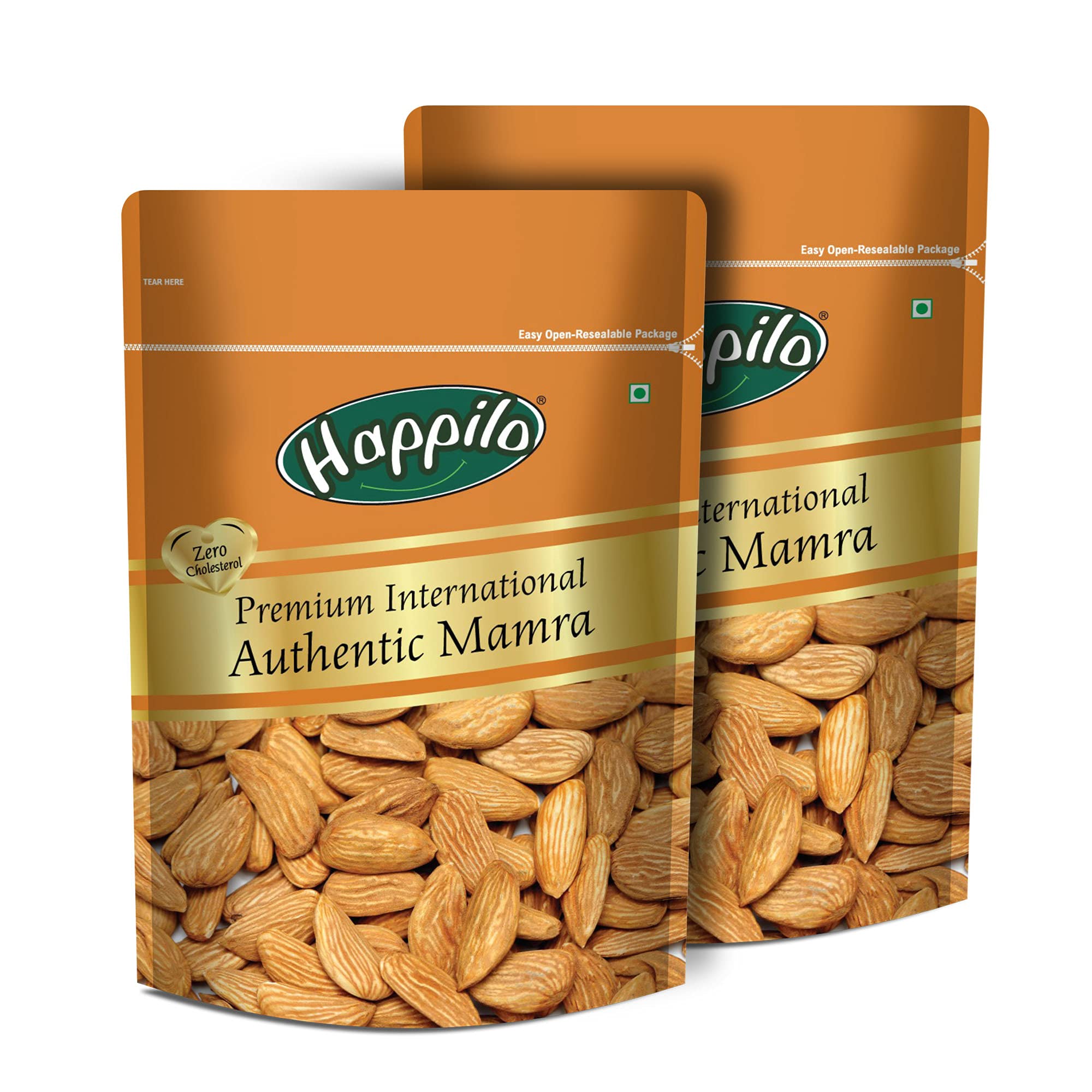 Happilo 100% Natural Premium Mamra Almonds is 100% Real nuts- good for an active life style It's High in Protein Dietary Fiber Gluten Free Non-GMO Zero Trans Fat & Zero Cholesterol. A pack of nut that prepares you for a power packed day ahead. Happilo Zip Lock Pouch with airtight seal to ensure the product is protected and fresh. Quality assured - Happilo products are rigorously tested against the industry's best quality standards.
