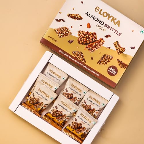 Loyka Almond Brittle Classic Choco Box - 7 pcs | Premium Chocolate Gift Hamper | Choco & Nut Dryfruit Delicacy | Roasted California Almonds (40%) Dark Choco & Salted Caramel | Any-time snack