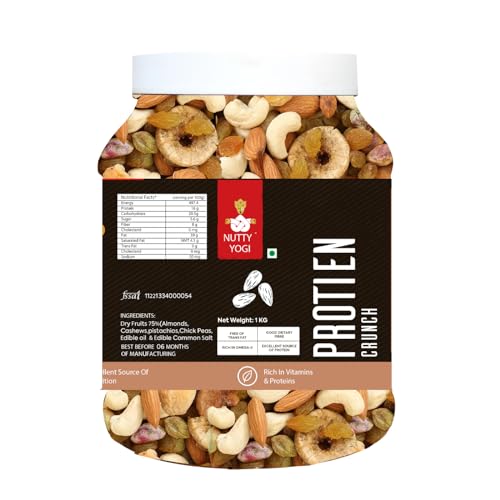 Nutty Yogi Protein Crunch Premium Dry Fruit Mix Healthy Trail Mix with Dry Fruits | Mix Dry Fruit | Almonds I Cashews I Pistachio I Chickpeas | Reusable Jar (1Kg)