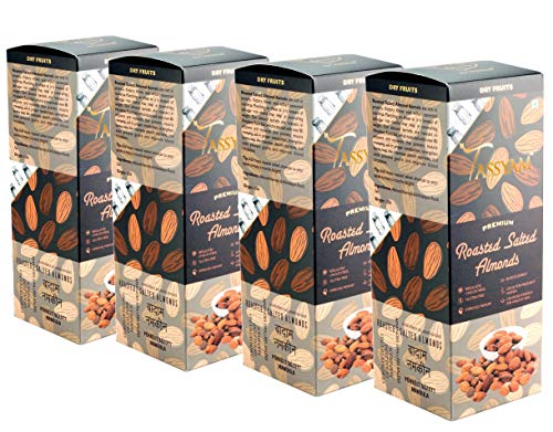 Tassyam Premium Roasted Salted Almonds 1kg (4X 250g) Namkeen Badaam Giri | Extreme Value Pack | Oil Free Roasting
