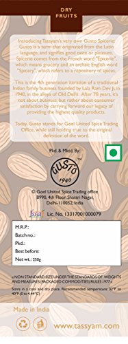Tassyam Almonds are of very good quality. The packing is good and so are the contents.