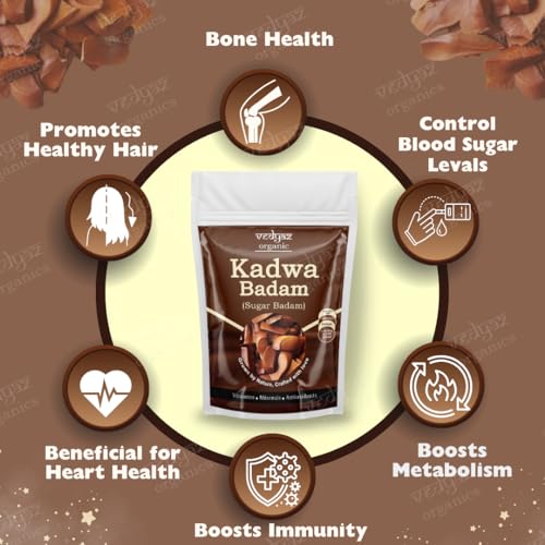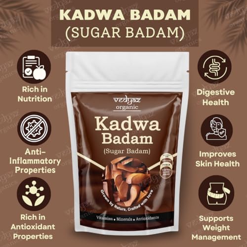 Elevate your snacking experience with Vedyaz Organics' Kadwa Bdadm (Sugar Badam) a premium selection of bitter almonds. Our Kadwa Bdadm is carefully sourced from the finest organic farms ensuring a product that's as nutritious as it is delicious. With a unique balance of bitterness and sweetness these almonds are perfect for adding a sophisticated touch to your recipes or enjoying as a wholesome snack. Kadwa Bdadm/Sugar Badam from Vedyaz Organics is a premium selection of almonds celebrated for their rich flavor and numerous health benefits. These almonds are a versatile addition to your diet. Whether you’re using them in baking cooking or as a nutritious snack Kadwa Bdadm adds a delightful crunch and a burst of natural goodness. Sourced from the finest orchards and processed with the utmost care these almonds are a testament to our commitment to quality and purity. Enjoy the perfect balance of taste and health in every bite with Vedyaz Organics Kadwa Bdadm.