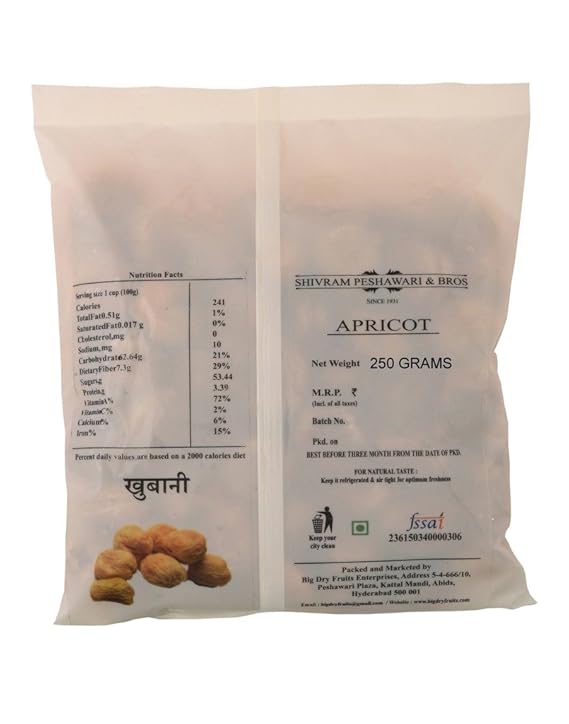 Shivram Peshawari & Bros Apricots are those beautifully orange colored fruits full of beta-carotene and fiber. They are an excellent source of Vitamin A, Vitamin C, fibers, iron and plant antioxidants. Apricots are one of the healthiest foods. They are rich in antioxidants, vitamins and other nutrients that work wonders for your health and skin. The apricots by Shivram Peshawari & Bros are delicious and appetizing. You can include them in breakfast, diet food or make delicacies with these apricots. Dry fruits are one of the perfect gifting options. You can gift them to your loved ones on various occasions to cherish happiness.