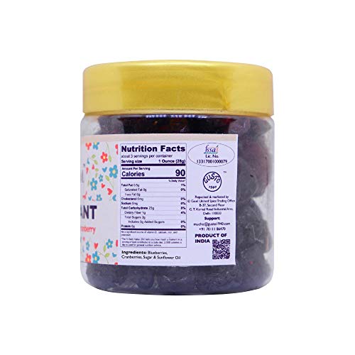 • A pocketable shot of the king and queen of antioxidant berries - imported cranberries & blueberries