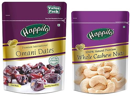 100% Natural Premium Whole Cashews 200gOur cashews are a real treat. These are the best nuts you can ever find. They are delightfully rich and tasty a nutritious treat that will make a great snack time.Premium International Omani Dates 250g (Pack of 2)has travelled the world to get the finest gourmet dry fruits dried fruits nuts berries and dates 100 percent natural and authentic. Indulge into the gourmet and grocery world of with awesome natural nuts and dry fruits along with the unique dry fruit mixes fusions and flavoured dry fruits healthy seeds and dried berries specially crafted for your taste and health. dry fruit gift boxes and festive dry fruits and nuts gift pack brings health happiness and love to gift to your colleagues friends and family. We bring you the taste and health together in single pack in the finest of packing packed in an art of the state facility certified by all majors like fssai iso etc. Every pack is a perfect dry fruits gift for every festive occasion. product range includes dates like kalmi dates medjoul dates Omani dates kimia dates and exotic nuts and berries like dried goji berries hazel nuts macadamia nuts pecan nut kernels pine nut kernels exotic brazil nuts (amazon nuts) roasted Californian almonds flavours like magic masala peri peri salted roasted jumbo flavours like green chilly cashews lightly salted cashews paneer tikka cashews seeds like flax seeds sunflower seeds quinoa seeds chia seeds pumpkin seeds roasted lightly salted premium international products like dried whole blueberry cranberry super mix super mix berries heart healthy mix healthy nutmix party mix - lightly salted nuts and berries omega seed mix (roasted sunflower pumpkin and flax seeds) seeds and berries trial mix cranberries lovers mix jumbo mamro almonds 100 percent natural Californian almonds Afghani anjeer Turkish apricots blueberries dried and sweet whole cranberries roasted salted pistachios Californian pitted dried prunes raisins like Indian kishmish/dry grapes Afghani green raisins and Afghani black raisins walnuts dry fruits without shell and California in shell walnut kernels fancy dry fruit gift box dry fruits gift box with fruits dry fruits combo pack offers assorted dry fruits mixed dry fruits dry fruits box dry fruits container dry fruits mix dry fruits pantry dry fruits gift pack dry fruits mixed offer combo pack mixed nuts and dry fruits and all ranges of dry fruits and nuts and berries. Natural tasty and healthy Omani dates also known as khajoor are one of delicious farm fresh dates. Dates have the hidden quality of boosting energy instantly! Hence they are not just apt during festive season but are also a must-have snack for the entire year. It is superfood for super energy levels. Our products are packed under highest level of hygiene retaining all the goodness of nature.