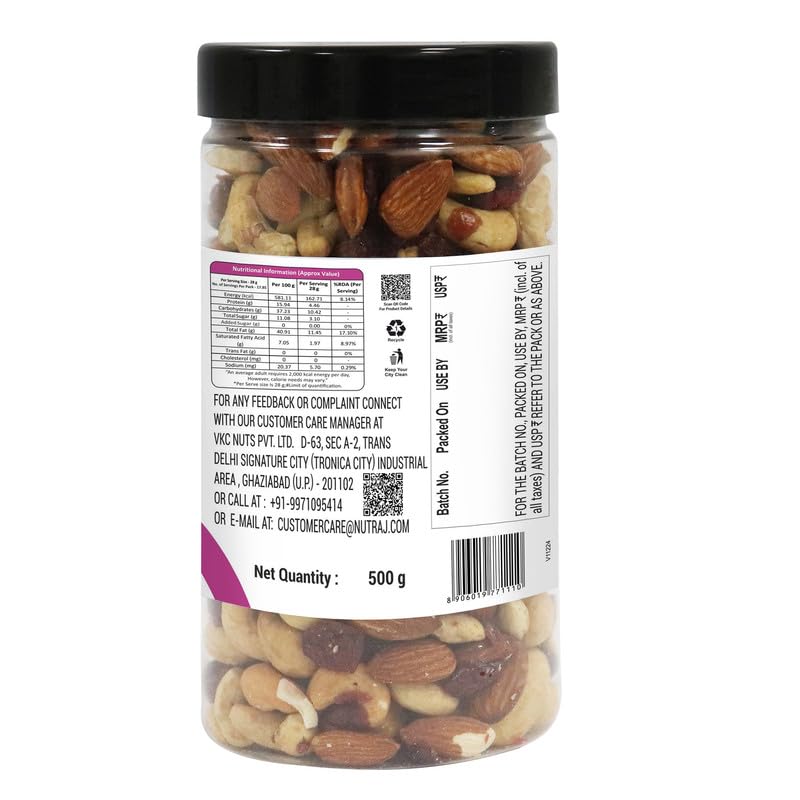 Nutraj Snackrite Cranberry & Nuts Trio 1Kg (500g x 2) Jar (Almond Cashew Cranberry) - Pack of 1| Dried fruits | Mixes dry fruits | Trail Mixes