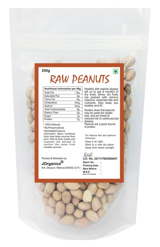 JOrganics Raw Peanuts 250gm Dry Fruits Nuts & Seeds | Healthy Natural Snack | Rich in Protein Fiber & Antioxidants | Boost Energy & Immunity | 100% Pure & Fresh
