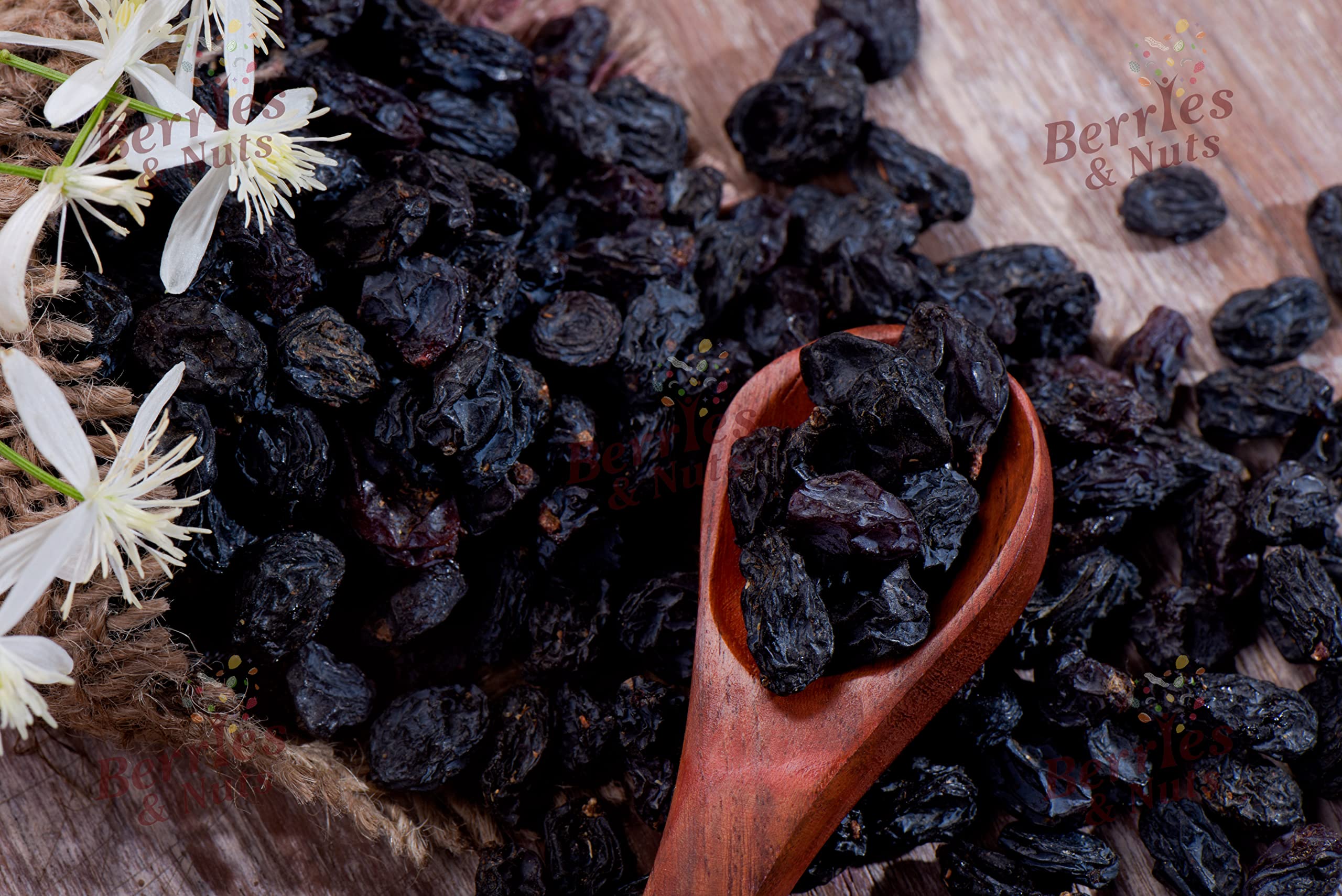 Black raisins are a type of dried grape known for their deep color and sweet taste. They are made by drying black grapes often through sun drying or a similar dehydration process. These raisins are commonly used in cooking baking and as a snack. They are rich in antioxidants vitamins and minerals particularly iron which makes them a good choice for boosting energy and improving overall health
