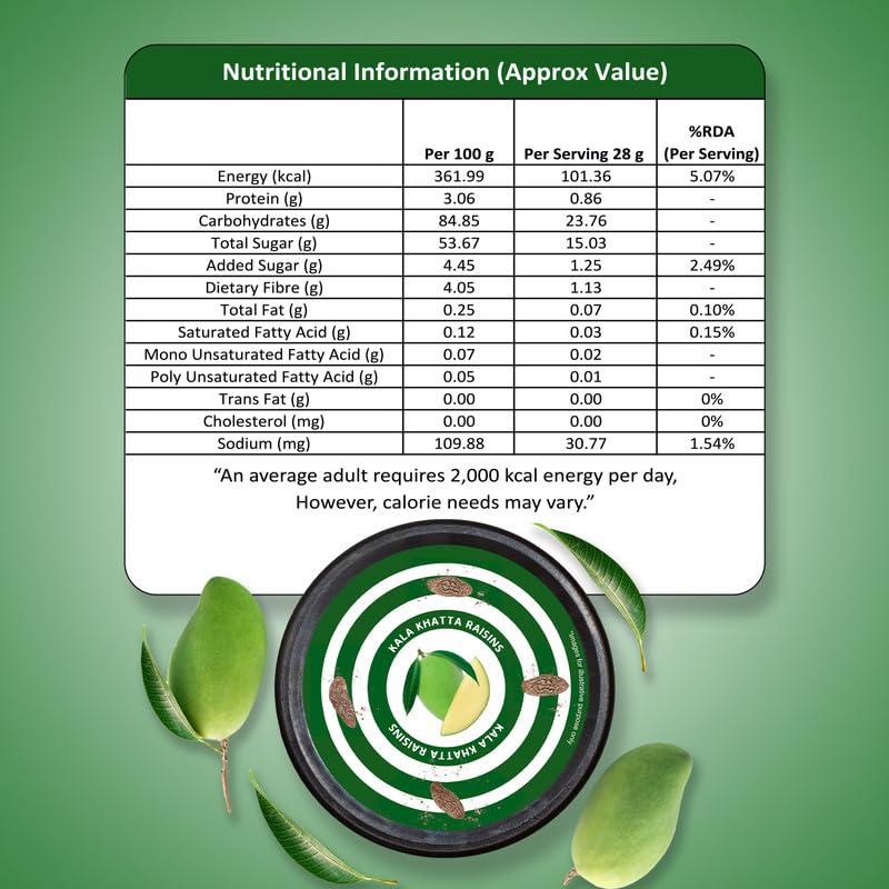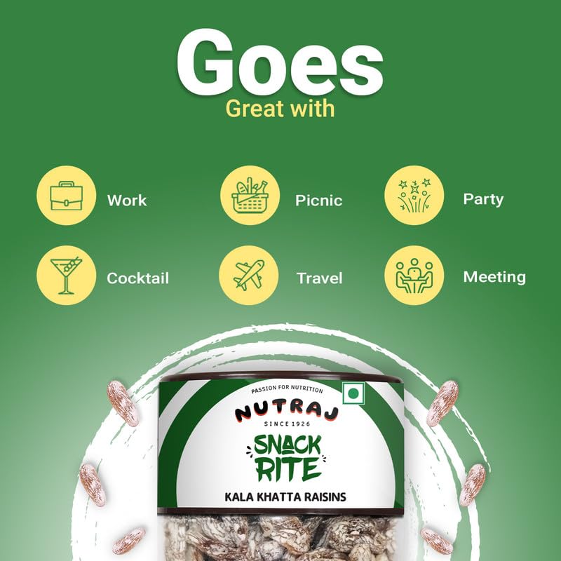 • Pack Content: Enjoy 200g Nutraj Kala Khatta Raisins a tangy healthy twist.