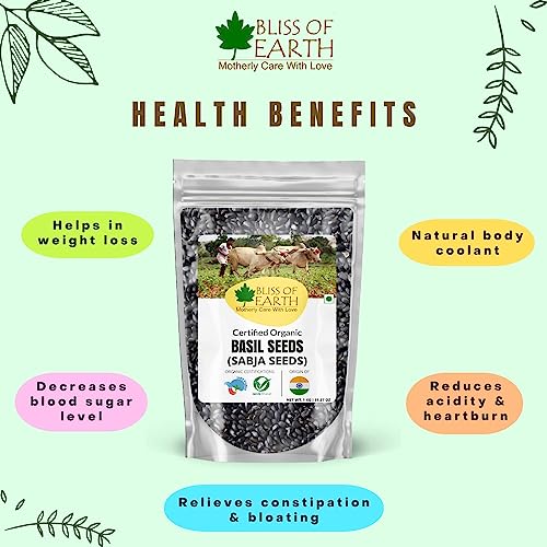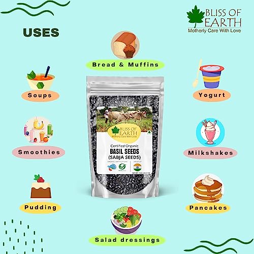 Bliss of Earth Certifed Organic Basil Seeds (Sabja) are used to add a unique flavour in food and beverages. basil seeds is a natural source of protien high in fiber a good source of minerals rich in plant base omega-3 fat & carbs. Preferably it can be eaten after soaking them in water for few minutes with many dishes.