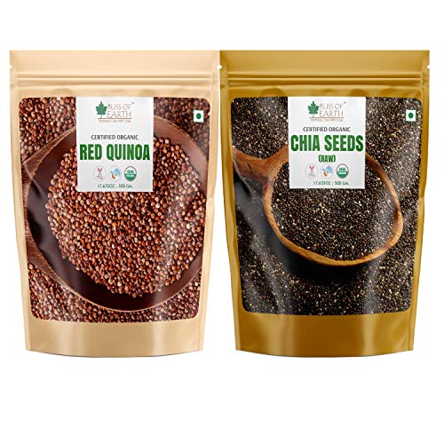 Bliss of Earth Certified Organic Red Quinoa is one of the most popular health food. Its high in protein fiber magnesium B vitamins iron potassium calcium phosphorus vitamin E and various beneficial antioxidants. Its also one of the few plant foods that contain sufficient amount of all nine essential amino acids. Bliss of Earth Certified Organic Chia Seeds are one of the healthiest food. They are loaded with nutrients that can benefit your body and brain. The high fiber and protein content in chia seeds can also helps in weight loss.