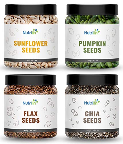 Nutrilin Raw Seeds Combo Pack | Pumpkin Seeds (250g) + Sunflower Seeds (250g) + Flax Seeds (300g) + Chia Seeds (300g) | High-Protein Superfood Mix for Weight Loss Immunity Heart & Gut Health