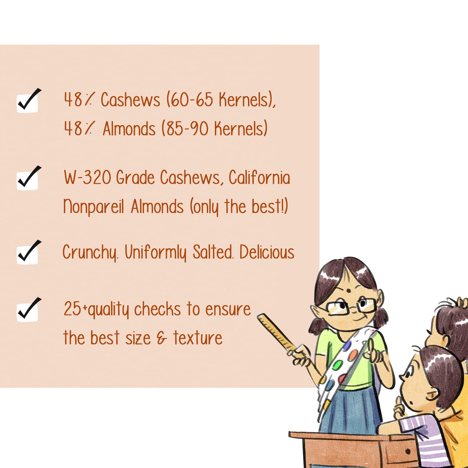 • From Zero Trans Fats to being rich in dietary fiber and protein; our kaju badam mix is everything that's right about snacking