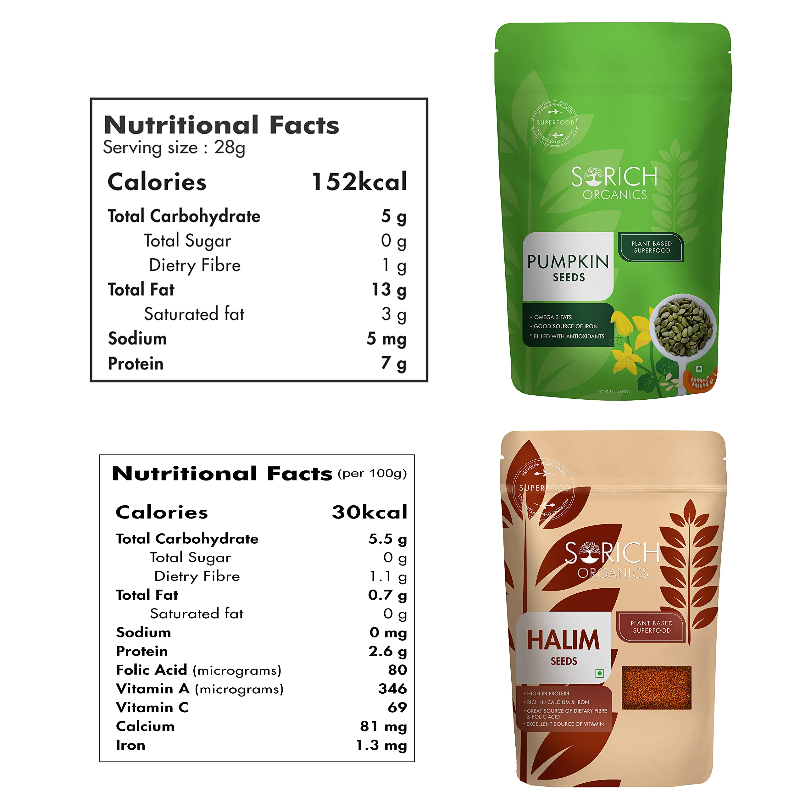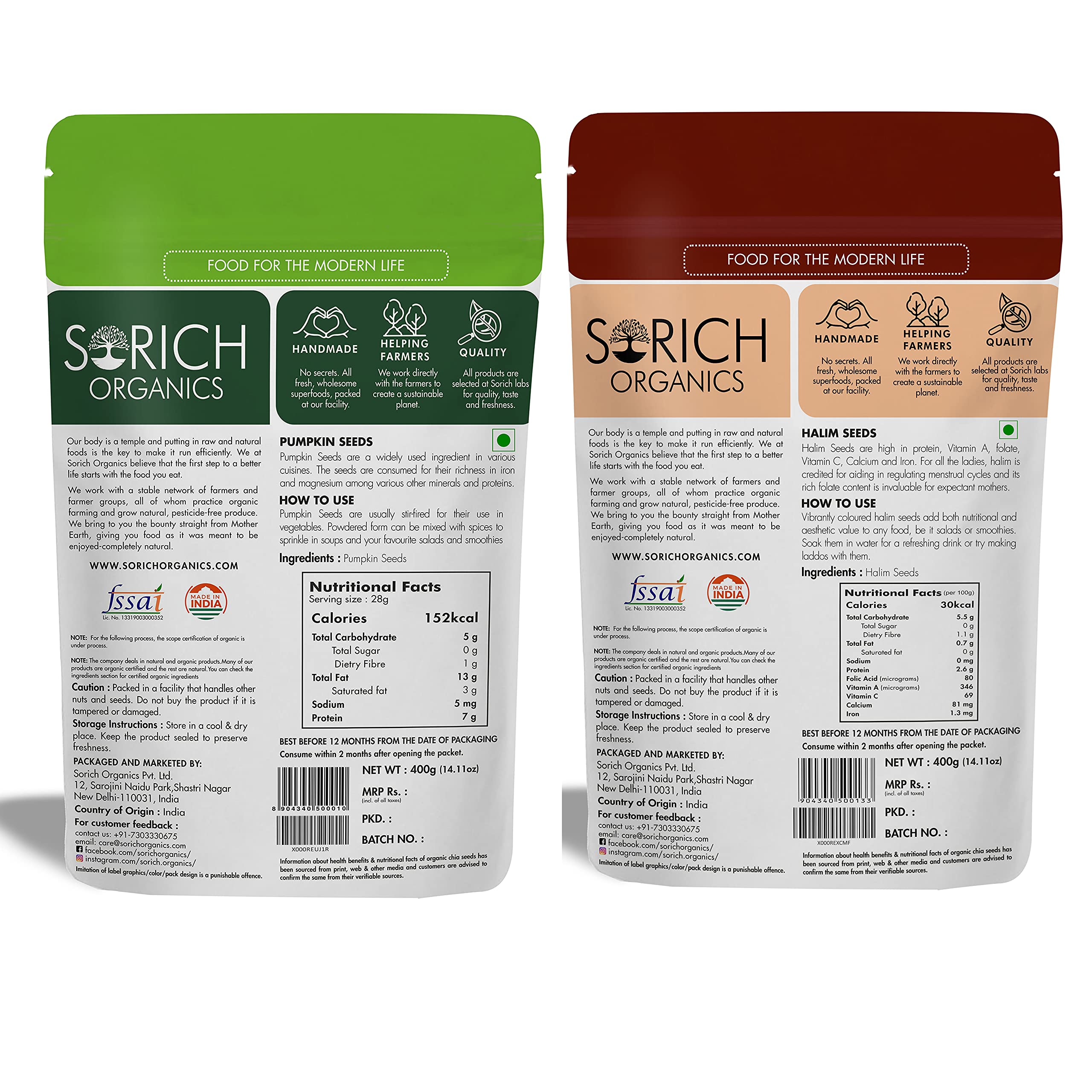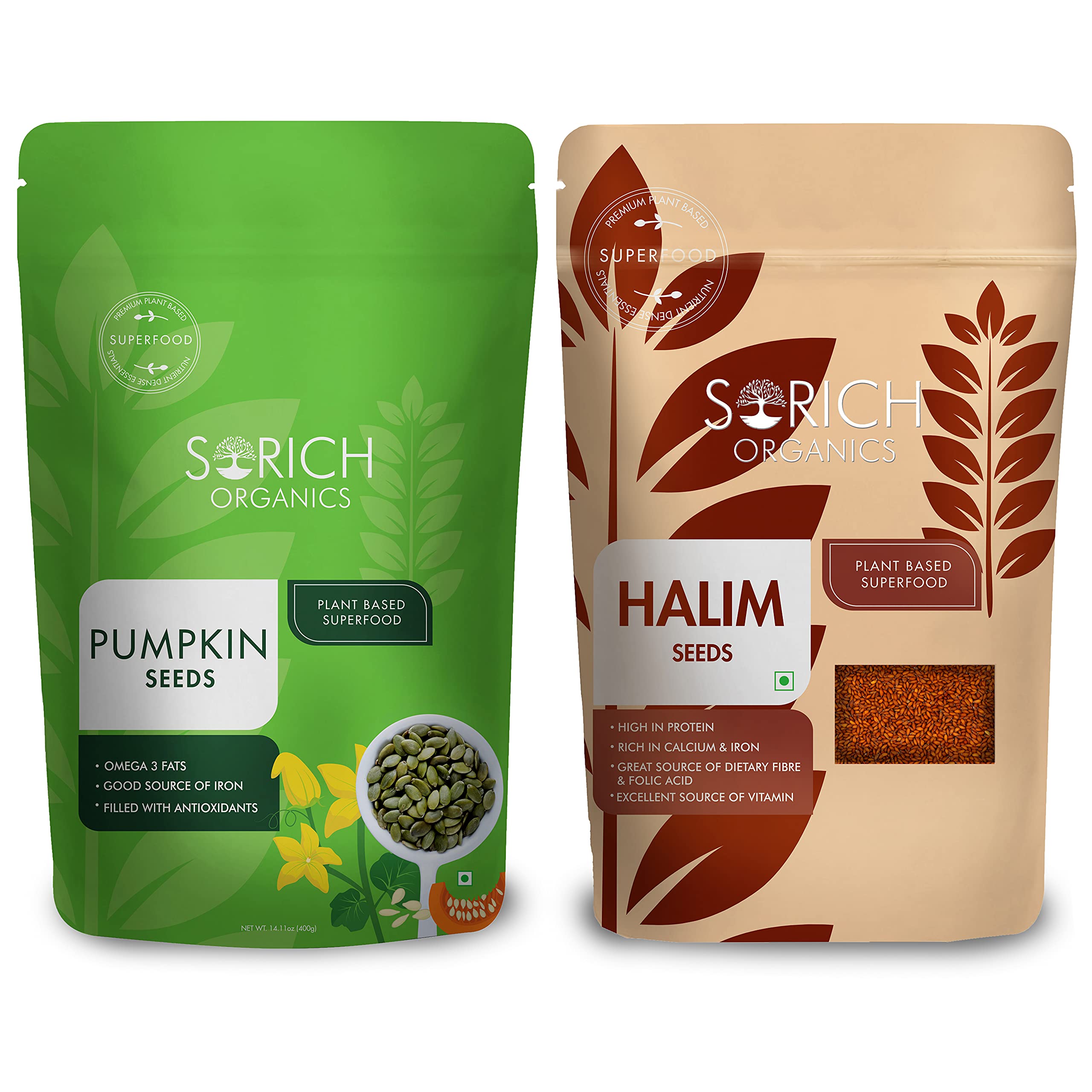 Sorich Organics Pumpkin Seeds & Halim Seeds Combo for Eating (400gm Each) | Pumpkin Seeds for Eating | Halim Seeds | Rich in Antioxidants | High in Protein