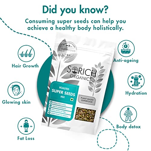 Sorich Organics Roasted Super Seeds Mix 400gm | Seeds Mix for Eating | Mixed Seeds for Management Hair Growth | High Protein Healthy Snacks | Diet Food | Vegan | Free