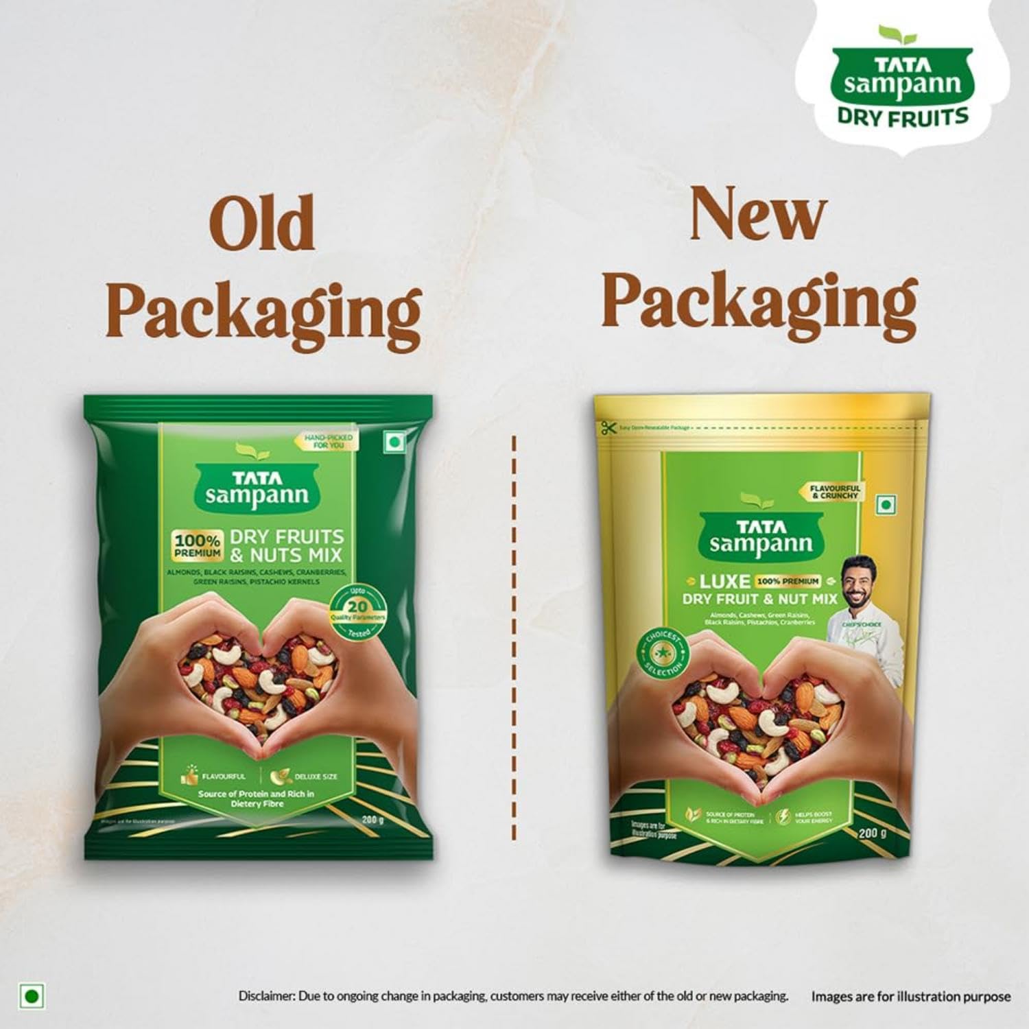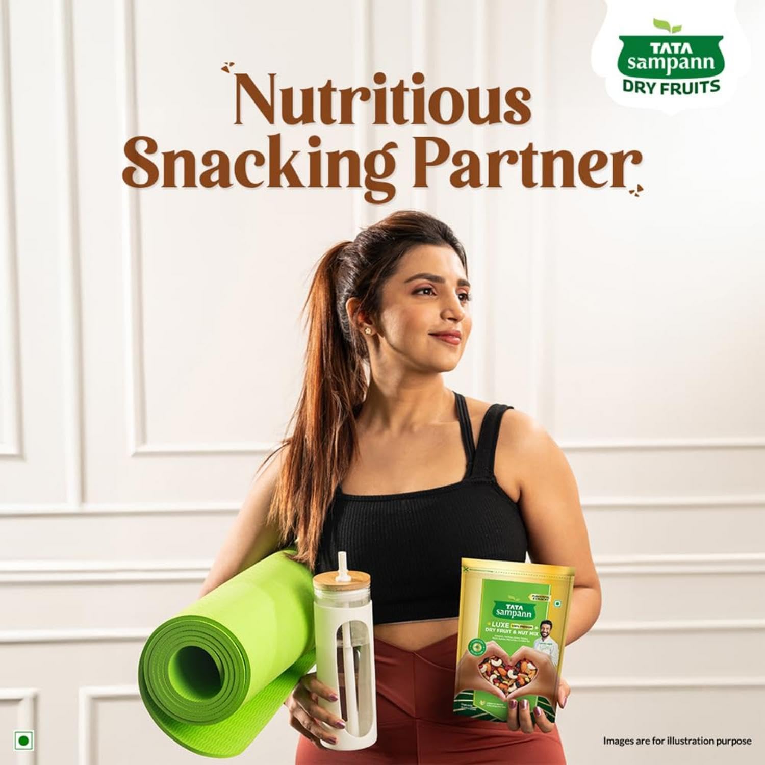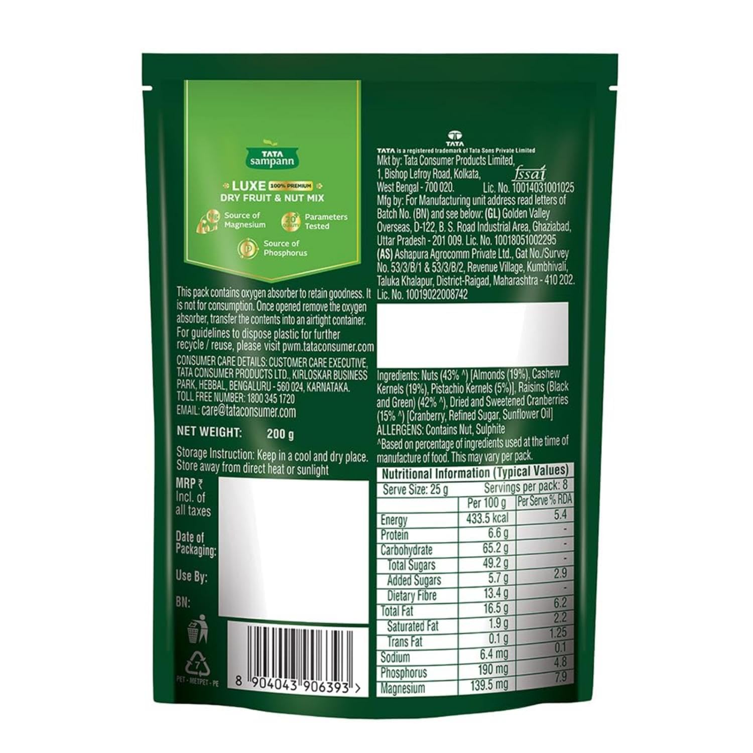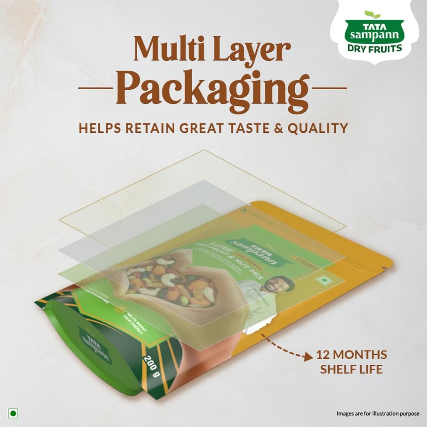 Mixed goodness for wholesome times! Introducing Tata Sampann Dry Fruits & Nuts Mix that contains your favourite almonds black raisins cashews cranberries green raisins and pistachio. It contains 100% premium hand-picked nuts and dry fruits. With up to 20 quality parameters tested Tata Sampann ensures that you only get the choicest selection of nuts and dry fruits. This nuts and dry fruits mix pack from Tata Sampann contains flavourful deluxe-size dry fruits and nuts. With Tata Sampann mixed dry fruits and nuts enjoy a delicious indulgence always! This nutritious snack is a source of protein that contributes to the maintenance of normal bones and is rich in dietary fibre that aids bowel movement. Use this mixed dry fruits pack as a daily evening or pre-breakfast snack as a nutty delight to greet your guests or simply on-the-go snack. Buy Tata Sampann 100% Dry Fruits & Nuts Mix and other products in the range to bring happiness to your loved ones and yourself! Storage Instructions: Store in a cool and dry place.