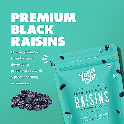 HomeGroceryNutsSeedsYogabar Premium Black Raisins 200Gram|Kishmish|100% Fresh Pure Seedless Kismis Raisins|Munakka Dry Fruit|Rich In Iron, Fibre, Potassium & Boosts Immunity|Healthy Snacks|Dry Fruit Gift Pack