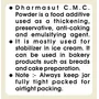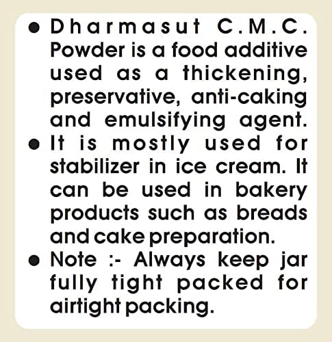 Dharmasut CMC Powder is a thickening agent that can be used to make ice cream frozen yogurt and other desserts. C.M.C. powder works by absorbing water from the surrounding environment and increasing the thickness of the product. It also improves mouthfeel by providing a firm yet smooth texture to your food products. CMC powder is widely used in ice cream baking breads and cakes.