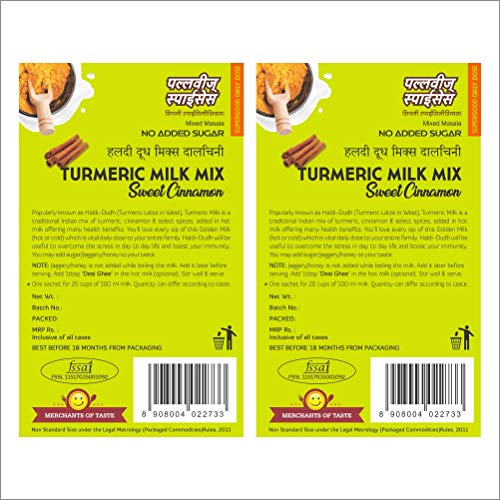 Turmeric Milk of is made of Turmeric powder Ginger and select spices. To be added in hot milk. No added Sugar. Can add Sugar Jaggery Powder or Honey later. Use lesser quantity enjoy better quality.