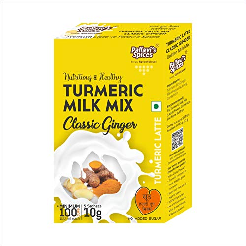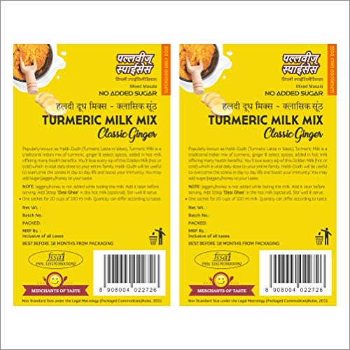 Turmeric Milk Mix Classic Ginger of is made of Turmeric powder Ginger and select spices. To be added in hot milk. No added Sugar. Can add Sugar Jaggery Powder or Honey later. Use lesser quantity enjoy better quality.