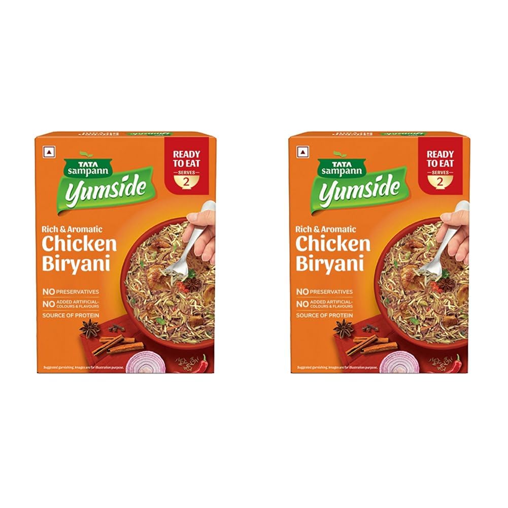 Tata Sampann Yumside Ready to Eat Chicken Biryani 330g Instant Food Ready in 60 Secs NO Preservatives NO Added Artificial Colours & Flavours Rich & Aromatic Pack of 2