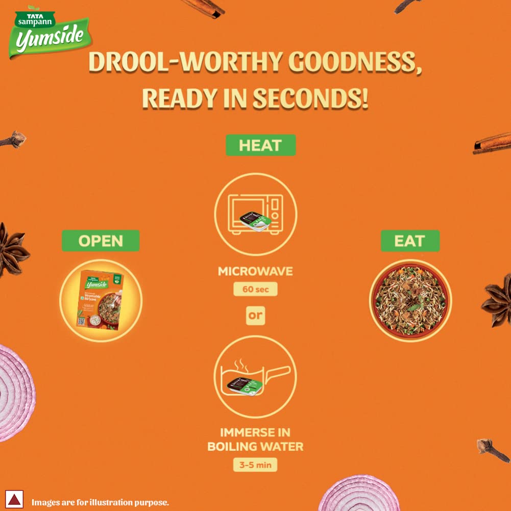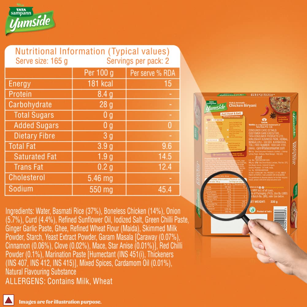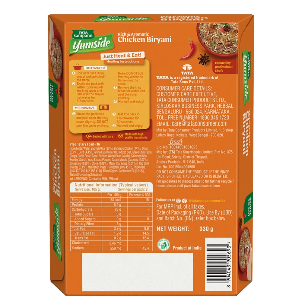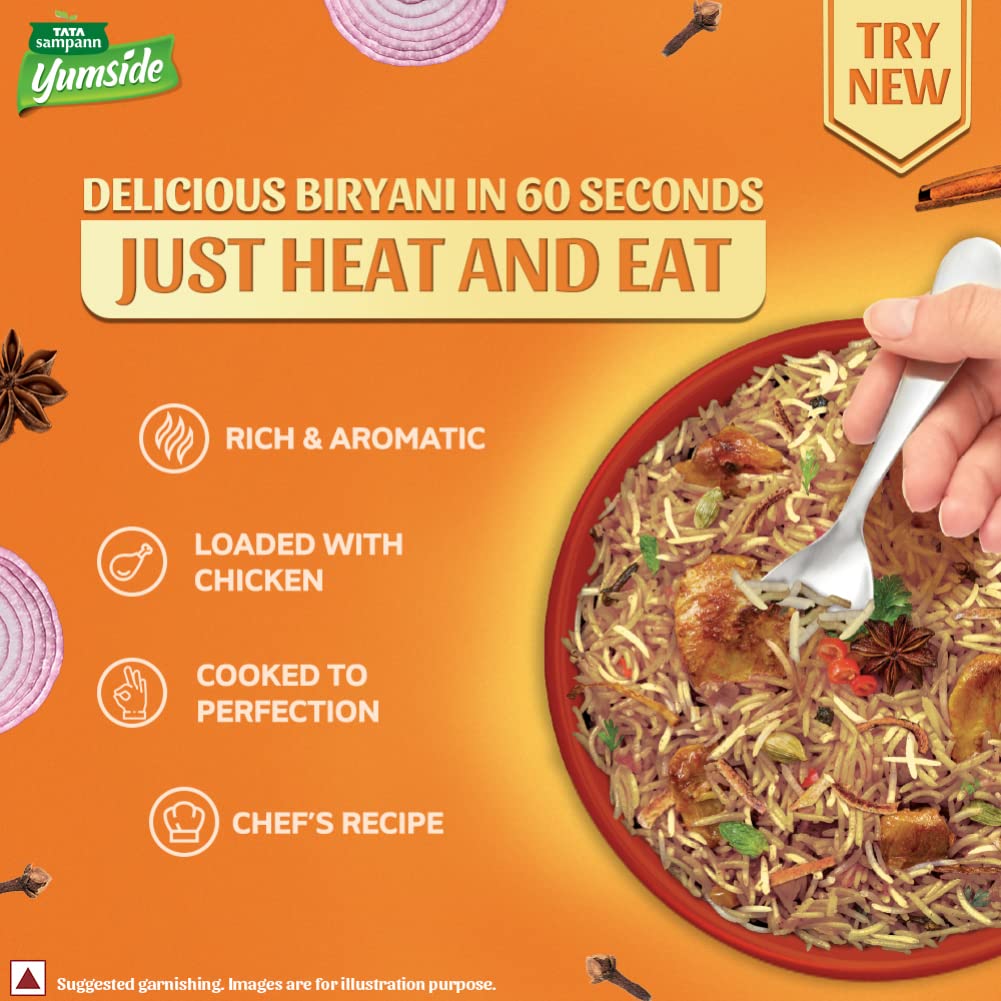 GREAT TASTE: Delight your taste buds with Tata Sampann Yumside's rich and aromatic Chicken Biryani â loaded with tender boneless chicken and cooked to perfection