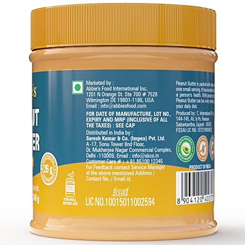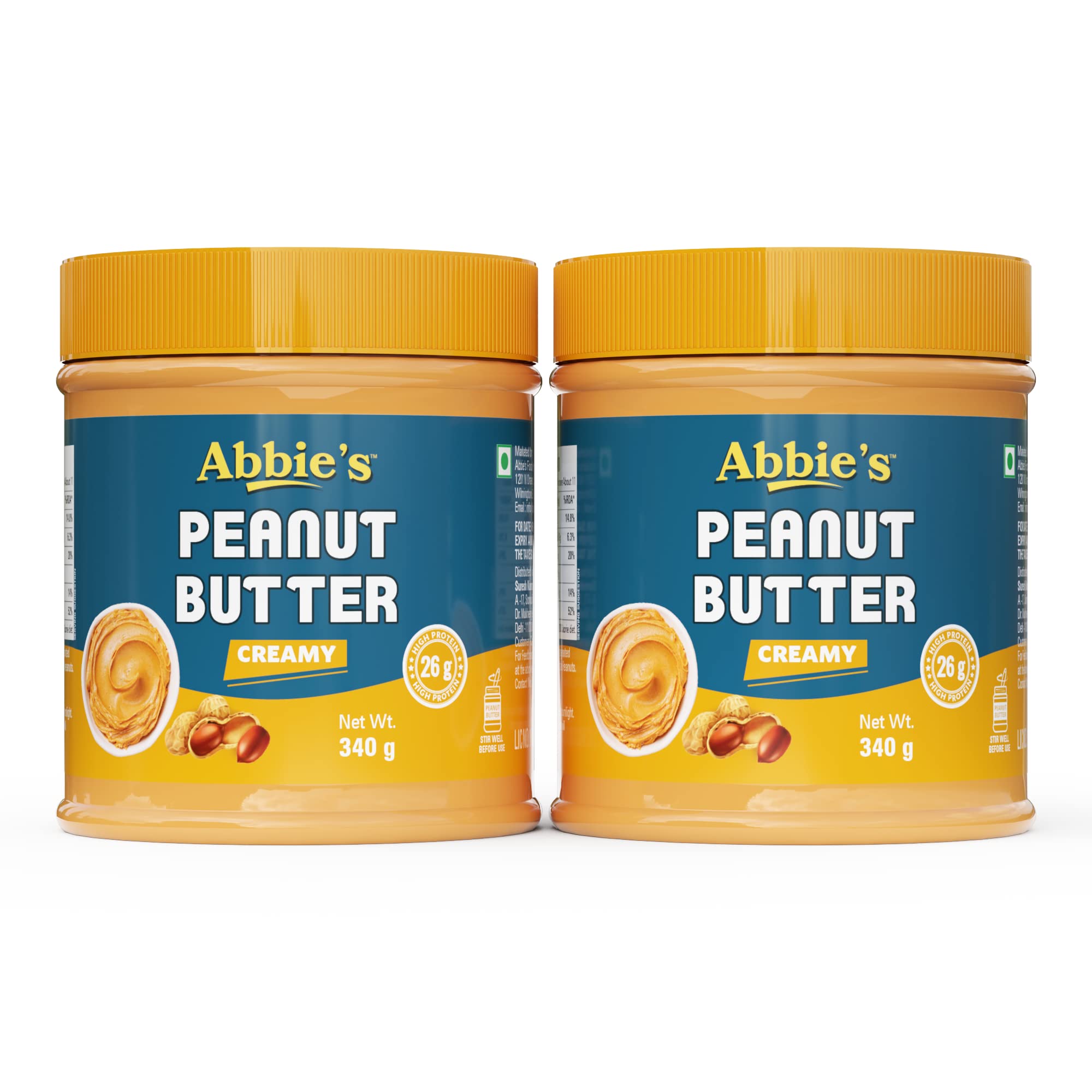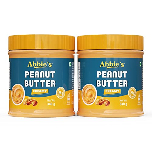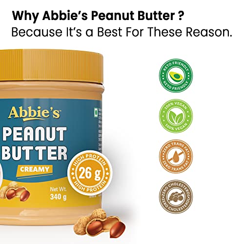 HomeGroceryFlavorsNut & Seed ButterAbbie's Peanut Butter Creamy (340 grams-Pack of 2) with 26 grams Protein Per 100 grams Serving, Zero Trans Fat/Cholesterol, Keto Friendly,100% Vegan, Good Source of Fat for Athletes, Body Builders