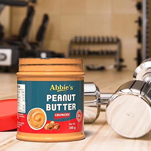 HomeGroceryFlavorsNut & Seed ButterAbbie's Peanut Butter Crunchy (340g - Pack of 2) with 26g Protein Per 100g Serving, Zero Trans Fat/Cholesterol, Keto Friendly,100% Vegan, Good Source of Fat for Athletes, Body Builders