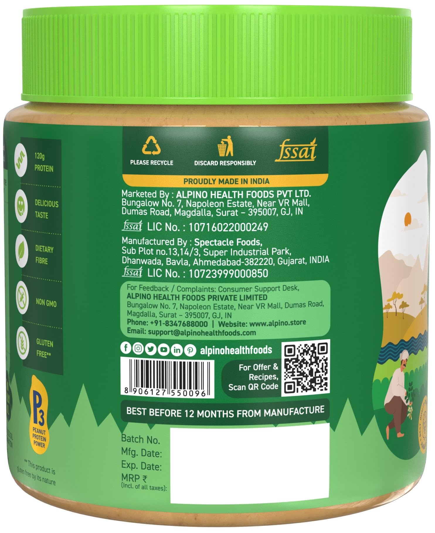 ALPINO Natural Peanut Butter Crunch - 100% Roasted Peanuts - 30g Protein No Added Sugar & Salt Gluten Free â Plant Based Unsweetened Peanut Butter Crunchy (400 G)