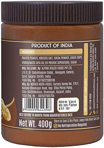 ALPINO Natural Peanut Butter Smooth 400g - Made with 100% Roasted Peanuts - 30g Protein No Added Sugar & Salt non-GMO Gluten Free Vegan Plant Based Unsweetened Peanut Butter CreamyAlpino Peanut Butter is a Nutrient-Rich Food Containing High Levels of Protein Several Vitamins and Dietary Minerals. Regular Consumption of Peanut Butter helps in Weight Loss Lowers the Risk of Cancer and Diabetes Protects Against Alzheimer's Disease and Other Neurodegenerative Diseases. Peanut Butter contains More Unsaturated Fats than Saturated Fats making it a Fat Friendly Food Which Lowers the Risk of Cardiovascular and Coronary Heart Disease. Due to Various Benefits and Source of Everything Healthy Peanut Butter is widely used Against the Malnutrition in Children across the Globe. "ALPINO Chocolate Peanut Butter Smooth 400g - Roasted Peanuts Chocolate Paste Brown Sugar & Sea Salt - 24g Protein non-GMO Gluten Free Vegan Plant Based Peanut Butter Creamy"Alpino Peanut Butter is a Nutrient-Rich Food Containing High Levels of Protein Several Vitamins and Dietary Minerals. Regular Consumption of Peanut Butter helps in Weight Loss Lowers the Risk of Cancer and Diabetes Protects Against Alzheimer's Disease and Other Neurodegenerative Diseases. Peanut Butter contains More Unsaturated Fats than Saturated Fats making it a Fat Friendly Food Which Lowers the Risk of Cardiovascular and Coronary Heart Disease. Due to Various Benefits and Source of Everything Healthy Peanut Butter is widely used Against the Malnutrition in Children across the Globe. "